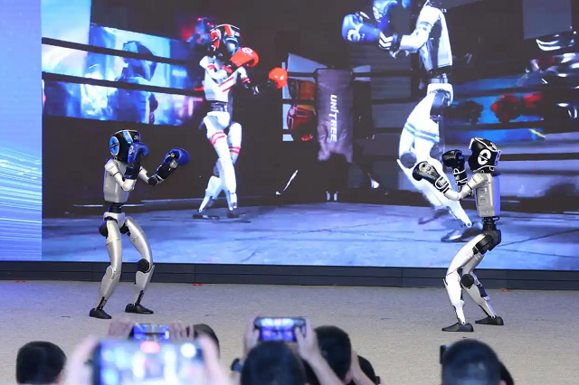 主場(chǎng)活動(dòng)的內(nèi)容精彩紛呈,宇樹(shù)科技的機(jī)器人格斗秀,將工業(yè)美學(xué)與機(jī)械的力量完美融合;浙江傳媒學(xué)院袁琳副教授演繹的《詩(shī)畫(huà)AI》,展現(xiàn)傳統(tǒng)詩(shī)畫(huà)與現(xiàn)代科技的碰撞以及AI的多元應(yīng)用;場(chǎng)館內(nèi)微分智飛的空中自主機(jī)器人表演秀,勾勒出未來(lái)生活圖景。