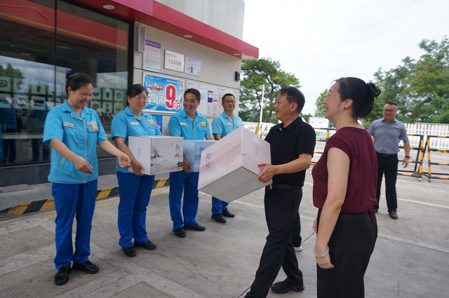 現(xiàn)場,董文吉關切詢問加油站員工日常工作強度、作息安排和生活狀況。“天氣這么熱,工作時一定要注意防暑,身體才是本錢!”董文吉高度贊揚員工不為高溫酷暑,始終堅守崗位、保障油品穩(wěn)定供應的奉獻精神,并將藿香正氣水、清涼油、礦泉水、西瓜等防暑降溫物資一一送到員工手中。