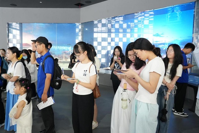 與此同時,在“智造寧波”展廳內(nèi),一場別開生面的“探館尋智之旅”同步拉開帷幕。活動以沉浸式體驗與互動探索相結(jié)合的方式,為學生打造了深度感知科技魅力的獨特場景。在講解員的帶領(lǐng)下,學生們近距離接觸300余家寧波本土企業(yè)的硬核成果,內(nèi)容涵蓋新能源汽車智能電池管理系統(tǒng)、工業(yè)機器人精密焊接技術(shù)、“寧波造”特種纖維等新材料,以及海洋工程裝備的深海探測技術(shù)等多個前沿領(lǐng)域。實物模型的細節(jié)呈現(xiàn)、動態(tài)演示的直觀展示與互動裝置的趣味操作相輔相成,讓原本抽象的“科技”變得可知、可感、可探索,幫助學生們清晰直觀地了解寧波企業(yè)的創(chuàng)新實力與發(fā)展?jié)摿Α?!--enorth cms news protect start-->