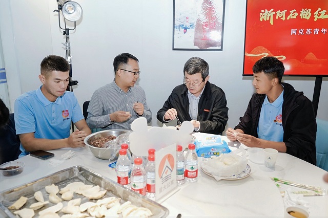 “第一次在學(xué)校共享廚房里包餃子,和中量大同學(xué)一起像家人一樣,特別溫暖!”阿克蘇學(xué)子古麗妮尕爾·吐爾洪笑著說。10月23日,中國計量大學(xué)“量小聚”共享廚房內(nèi),來自阿克蘇地區(qū)的50余名青年學(xué)子與中國計量大學(xué)學(xué)生圍坐一桌,一起包餃子、話家常,雪白的餃子皮包裹住兩地風(fēng)味,也串聯(lián)起跨越千里的情誼。