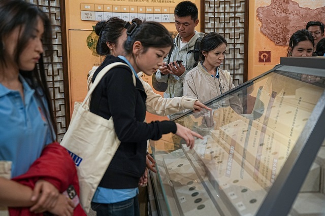 隨后,大家走進(jìn)逸夫計量博物館,開啟“觸摸計量歷史、感受科技力量”之旅。從商代骨尺到近代天平,再到現(xiàn)代精密儀器,大家在展品與講解中讀懂計量文明脈絡(luò)!霸瓉碛嬃吭诠糯秃娃r(nóng)業(yè)、貿(mào)易息息相關(guān)!”阿克蘇學(xué)子熱依拉·克孜駐足漢代銅權(quán)前,仔細(xì)聆聽其重量標(biāo)準(zhǔn)器的歷史。在現(xiàn)代計量展區(qū),直觀感受計量在國防科技領(lǐng)域的實(shí)際應(yīng)用。量大學(xué)子徐佳欣還主動當(dāng)起“輔助講解員”,為阿克蘇伙伴科普計量知識:“小到一根針,大到航天工程,都離不開精準(zhǔn)計量!