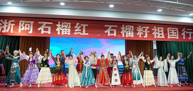 當(dāng)天,“浙阿石榴紅?石榴籽祖國行”交流活動在中國計量大學(xué)舉行,兩地青年以特色互動促進(jìn)文化交流,讓民族團(tuán)結(jié)之花綻滿校園;顒右潦,青春分享會成為浙阿青年學(xué)子深度交流的重要平臺,現(xiàn)場播放的阿克蘇地域文化宣傳片,讓量大學(xué)子直觀領(lǐng)略了當(dāng)?shù)氐娘L(fēng)土人情;兩地青年代表則圍繞精神傳承、青春奮斗等主題,分享成長故事、傳遞理想信念。從阿克蘇的發(fā)展變遷到校園里的奮斗點(diǎn)滴,真摯的講述引發(fā)強(qiáng)烈情感共鳴,不僅實(shí)現(xiàn)了語言的交流,更搭建起跨越地域的心靈紐帶,讓交往交流交融的種子在青春對話中悄然發(fā)芽。
