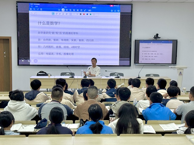 講座中,王楓從“什么是數(shù)學”這一問題切入,引導同學們思考數(shù)學的本質。結合數(shù)學思維的特點,向大家展示了數(shù)學作為一門精確語言的獨特魅力,他強調,解決問題的核心在于理解問題、提出解決方案、陳述解答三個關鍵環(huán)節(jié)。通過初等數(shù)論中的舉例分析,將抽象的數(shù)學概念與生動的“形”相結合,使同學們直觀感受到了數(shù)學的嚴謹與奧妙。此外,王教授還分享了關于數(shù)學競賽的知識,通過具體案例向學生們展示了數(shù)學問題的多樣性和挑戰(zhàn)性,他鼓勵大家在學習中保持好奇心和探索精神,不斷提升自己的數(shù)學思維能力。整場講座,王教授用深厚的學術功底和生動的案例,層層剖析數(shù)學思維的本質,師生們紛紛表示受益匪淺。