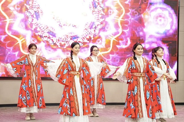 藏族舞《首飾》輕盈典雅,新疆舞串燒熱烈奔放,歌曲《在那東山頂上》空靈動(dòng)人,藏族群舞《授權(quán)》、哈薩克族舞《黑走馬》等節(jié)目贏得熱烈的歡呼與掌聲......穿插的民族知識(shí)趣味搶答也為現(xiàn)場(chǎng)增添互動(dòng)與樂(lè)趣。