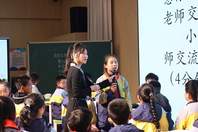 在隨后的學(xué)校匯報(bào)環(huán)節(jié),金東區(qū)第二實(shí)驗(yàn)小學(xué)黨支部書記、校長莊曉倩以《以共情賦能兒童成長》為題,系統(tǒng)性闡述了學(xué)校創(chuàng)造性構(gòu)建了“共情實(shí)驗(yàn)室”育人范式,圍繞“共情能力”這一社會(huì)情感關(guān)鍵指標(biāo),建立起“結(jié)構(gòu)化訓(xùn)練課—個(gè)適化輔導(dǎo)課—項(xiàng)目化應(yīng)用課”三階課程體系。該體系以結(jié)構(gòu)化課程夯實(shí)學(xué)生情緒識(shí)別、觀點(diǎn)采擇與共情表達(dá)的基礎(chǔ)能力;以個(gè)適化課程針對(duì)學(xué)生行為、心理與能力差異實(shí)施精準(zhǔn)干預(yù);以項(xiàng)目化課程推動(dòng)學(xué)生在真實(shí)社會(huì)情境中實(shí)現(xiàn)共情能力的“內(nèi)化遷移”,形成從認(rèn)知到行為的完整閉環(huán)。呈現(xiàn)了學(xué)校在“共情課程建設(shè)、課堂轉(zhuǎn)型與家校協(xié)同方面的實(shí)踐路徑。