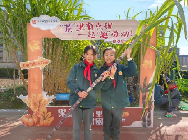 “一二三,使勁拔!”11月的杭州秋陽(yáng)正好,杭州市筧弘實(shí)驗(yàn)學(xué)校樓頂農(nóng)場(chǎng)“本草園”里傳來陣陣清脆的吶喊。100余根飽滿粗壯的甘蔗迎來豐收季。學(xué)生代表化身“小小農(nóng)夫”,親手參與甘蔗采收,在泥土與汗水的交織中,解鎖了一堂生動(dòng)的勞動(dòng)實(shí)踐課。
