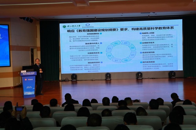 活動緊密圍繞時代前沿,將人工智能技術(shù)與科學(xué)教育的深度融合作為核心議題。多位權(quán)威專家?guī)砹烁咚降膶n}講座。浙江師范大學(xué)副校長李盛從宏觀戰(zhàn)略層面,深入闡釋了《教育強國指引下科技教育與人工智能融合的探索》;浙江省教研室副主任喻伯軍則聚焦實踐,提出了《建設(shè)科學(xué)教育實驗區(qū)、校的建議》,為一線工作提供了清晰的方法論指導(dǎo);科大訊飛AI技術(shù)應(yīng)用研究院副院長劉君分享了《人工智能技術(shù)最新進展及在科學(xué)教育實踐案例》,生動展現(xiàn)了AI技術(shù)重塑科學(xué)課堂的廣闊前景。
