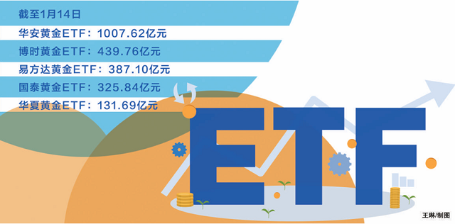 全市場首只千億元級黃金ETF出現(xiàn)。截至1月14日,華安易富黃金交易型開放式證券投資基金(以下簡稱“華安黃金ETF”)份額為101.62億份,規(guī)模首次突破千億元大關(guān),達1007.62億元。