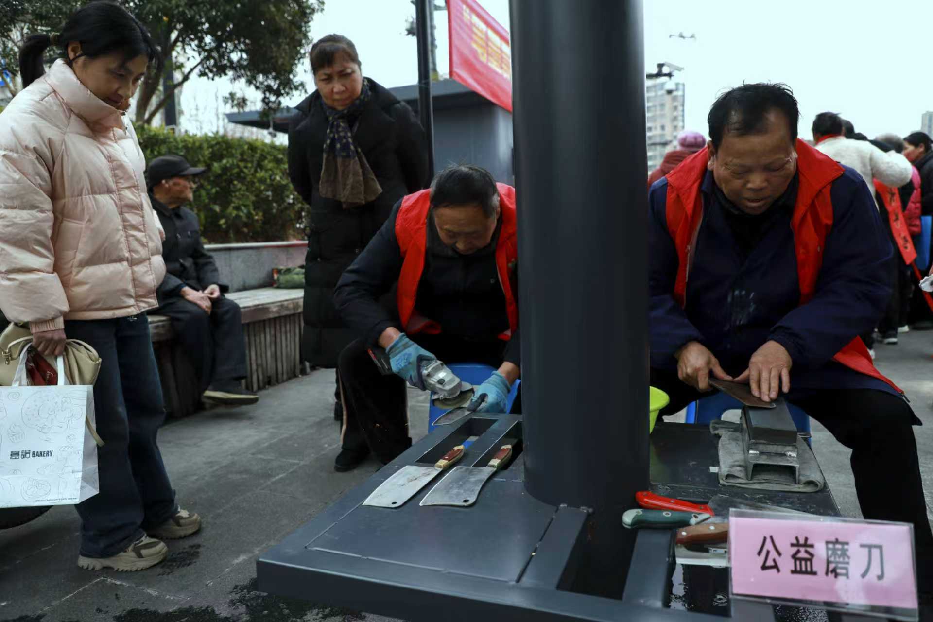 活動現(xiàn)場,書法志愿者揮毫潑墨,免費為居民書寫春聯(lián),濃濃墨香傳遞新春祝福。同時為居民公益理發(fā)、免費磨刀、衣物縫補、健康義診等便民服務(wù),志愿者們耐心細(xì)致服務(wù),讓居民在家門口感受到社區(qū)溫暖,贏得現(xiàn)場居民一致好評。