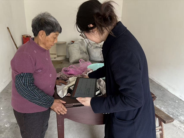 楊奶奶年事已高,腿腳不便,新辦理的三代社?ㄒ恢蔽茨芗せ,養(yǎng)老金也無(wú)法轉(zhuǎn)入新卡發(fā)放。長(zhǎng)興農(nóng)商銀行吳山支行得知情況后,迅速啟動(dòng)應(yīng)急預(yù)案,安排兩名經(jīng)驗(yàn)豐富的員工攜帶移動(dòng)智能設(shè)備上門服務(wù)。